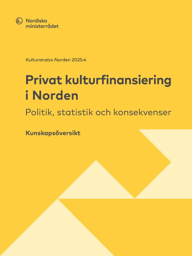 Kunskapsöversikten Privat kulturfinansiering i Norden bygger på akademisk forskning, utredningar och statistik om privat kulturfinansiering. Dessutom sammanställs politikens utveckling utifrån relevanta policydokument i länderna. Kunskapsöversikten är inriktad mot konst- och kulturområden som är i fokus för kulturpolitiken och finns att läsa nedan. Kulturanalys Norden är ett nordiskt kunskapscentrum för kulturpolitik som etablerats på uppdrag av Nordiska Ministerrådet.